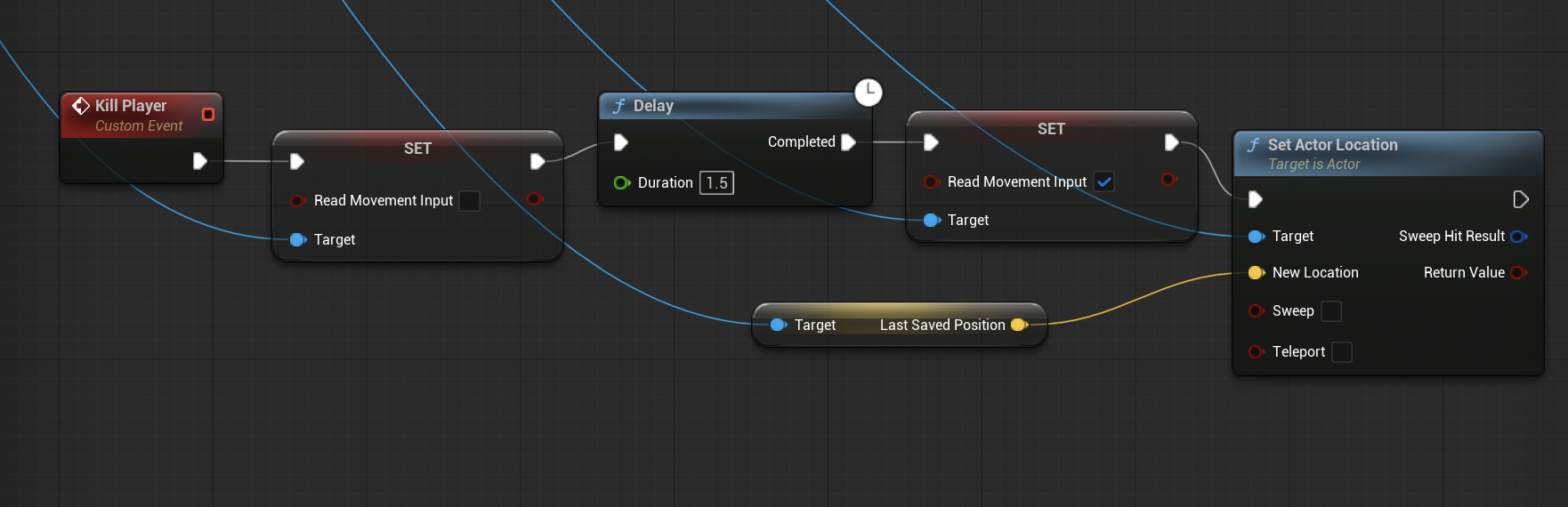 This function makes the player unable to move once they've been spotted and then sets their position back to the last checkpoint.