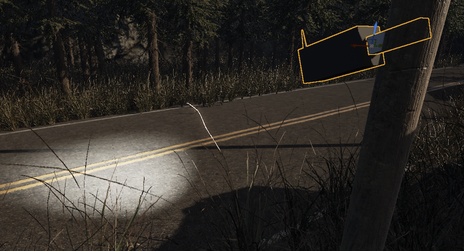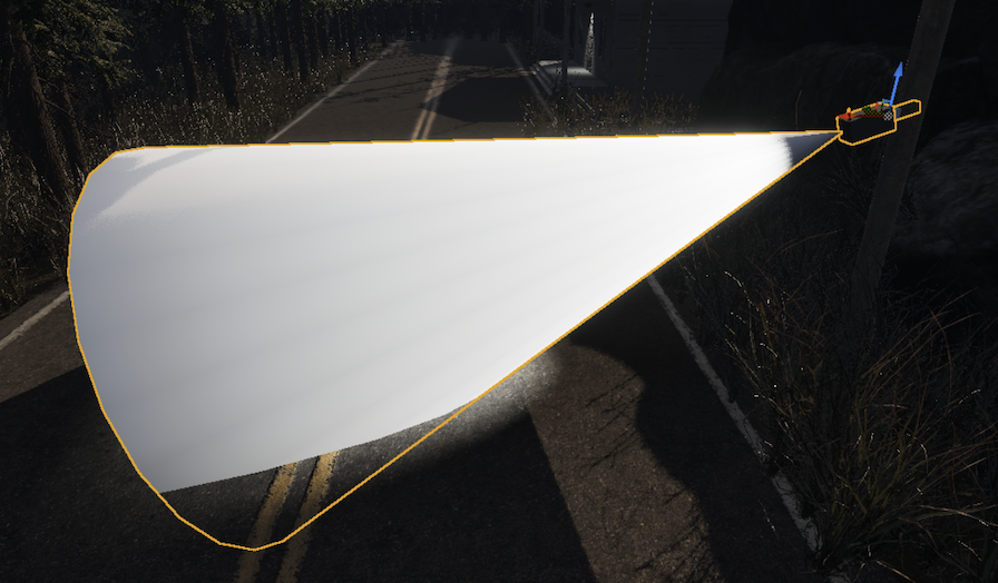 I then set the cone to invisible and put a spotlight that covers the same area so the player could tell the camera's field of view without a large cone in the way.